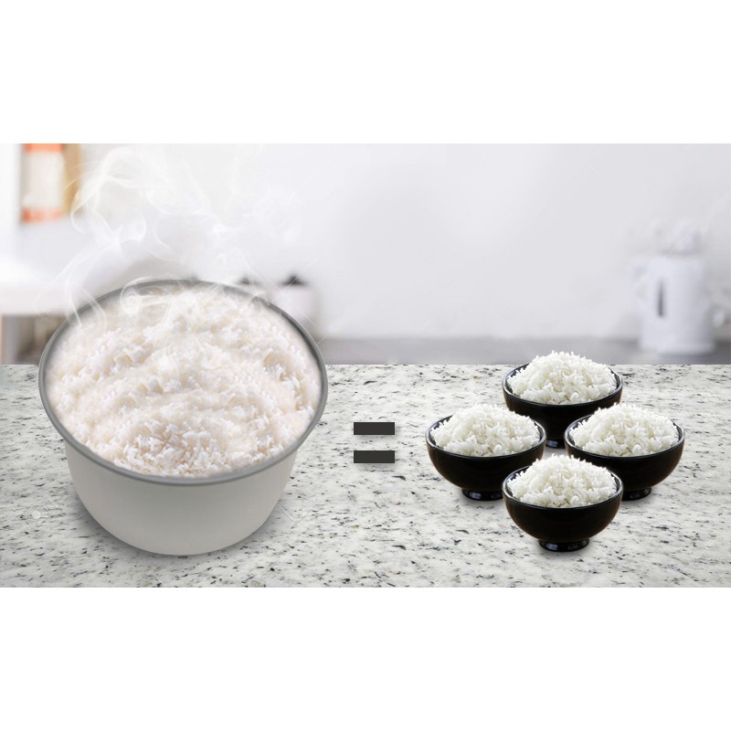 Đi kèm nồi có cốc đong gạo, muỗng lấy cơm, xửng hấp giúp nấu ăn tiện lợi
