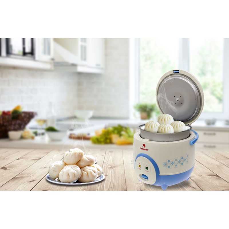 Nồi cơm điện Happycook sản xuất tại Indonesia, thương hiệu của Việt Nam, thiết kế xinh xắn và đẹp mắt.