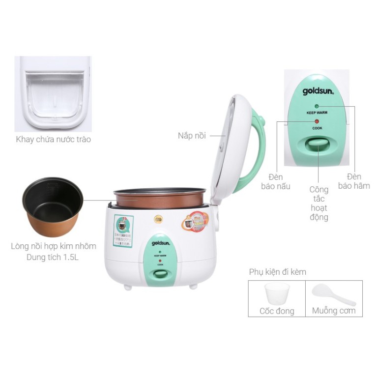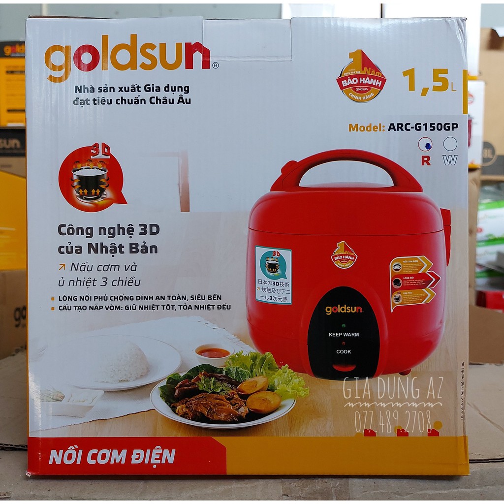 Thiết Bị Điện Gia Dụng > Đồ gia dụng nhà bếp > Nồi cơm điện || Nồi cơm điện 1.5L Goldsun 3D ARC-G150GP nắp gài thiết kế hiện đại nắp vòm thông minh giữ nhiệt tốt, chống tràn an toànCòn hàng