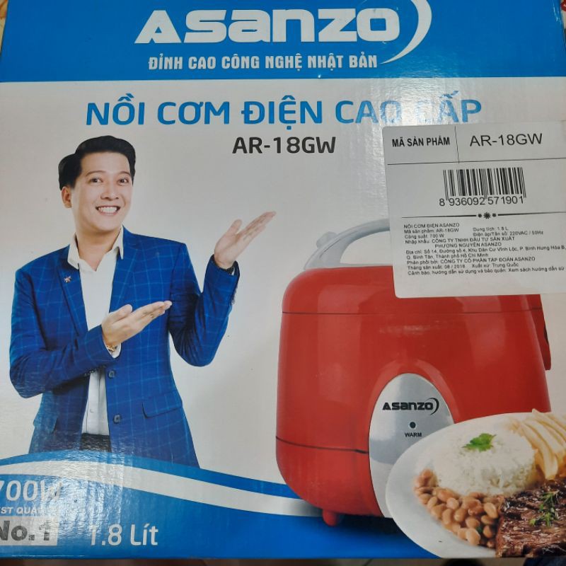 Giới thiệu NỒI CƠM ĐIỆN 1,8 LÍT ASANZO THIẾT KẾ LÒNG NIÊU TRÁNG MEN ( model : AR - 18GW )