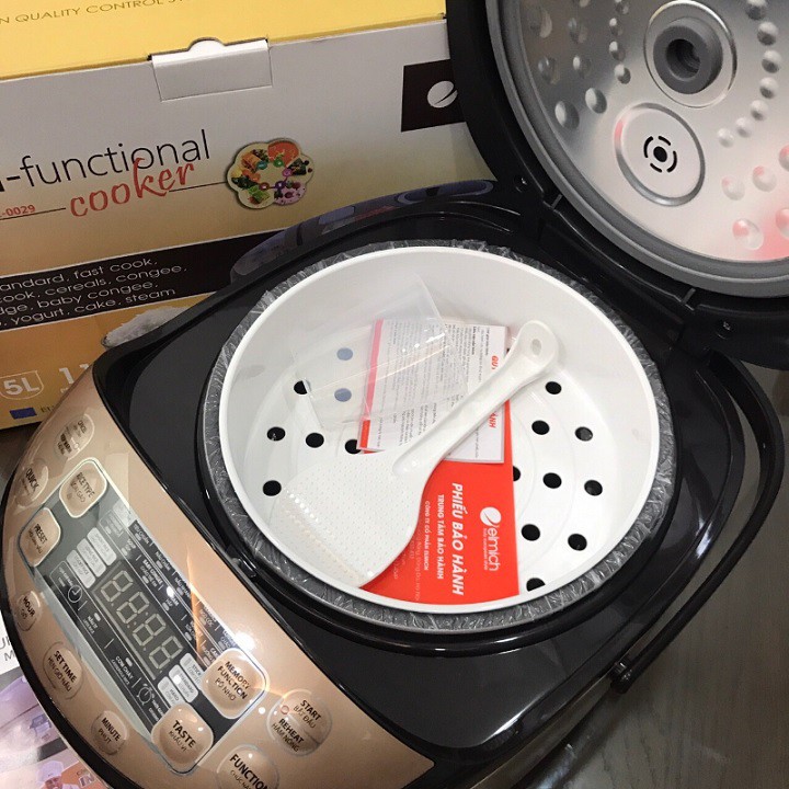 NỒI CƠM ĐIỆN 1.8L ELMICH RCE-0029 800WNồi cơm điện 1.8 lít Elmich RCE-0029 800W được thiết kế với các chức năng hiện đại, tính tiện dụng. Sản phẩm có màn hình hiển thị các thông số giúp bạn dễ dàng quan sát chu trình nấu của nồi. Bảng điều khiển các chế độ được lắp đặt ngay trên bề mặt trước của nồi giúp bạn thuận tiện hơn với các thao tác. Cụm thoát hơi lớn, hạn chế sự đóng tụ hơi nước trên thành nắp gây nhão cơm giúp bữa cơm gia đình thêm phần trọn vẹn.