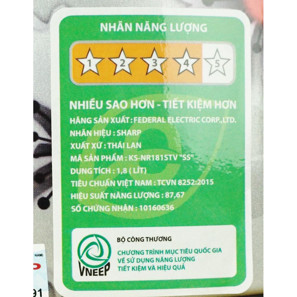 Thiết Bị Điện Gia Dụng > Đồ gia dụng nhà bếp > Nồi cơm điện || [Mã BMLT300 giảm 10% đơn 499K] Nồi cơm điện 1.8 lít Sharp KS-NR181STV chính hãng bảo hành toàn quốcCòn hàng