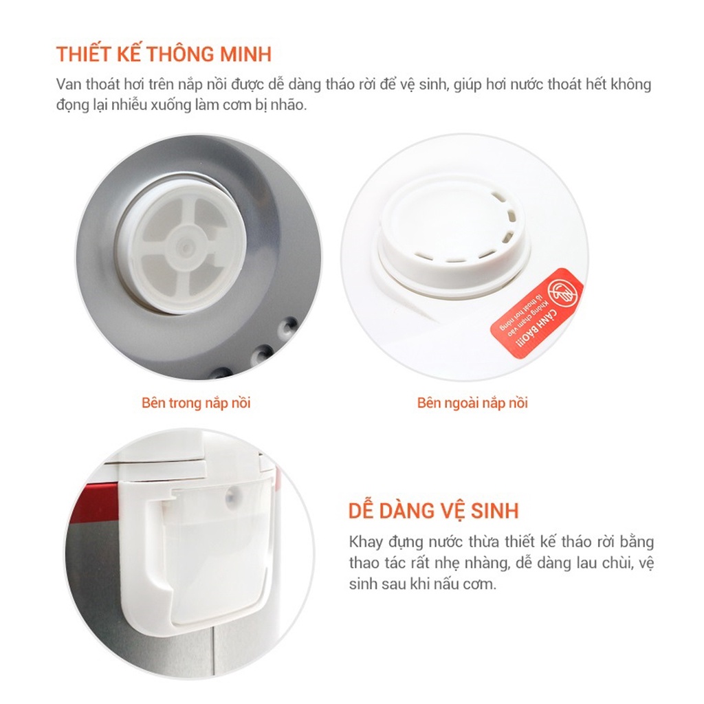 - Nồi được thiết kế kín hơi, có khả năng giữ nóng được cơm trong 5 giờ, giúp cơm sau khi nấu xong luôn nóng hổi, thơm ngon, giảm thiểu khả năng ôi thiu.