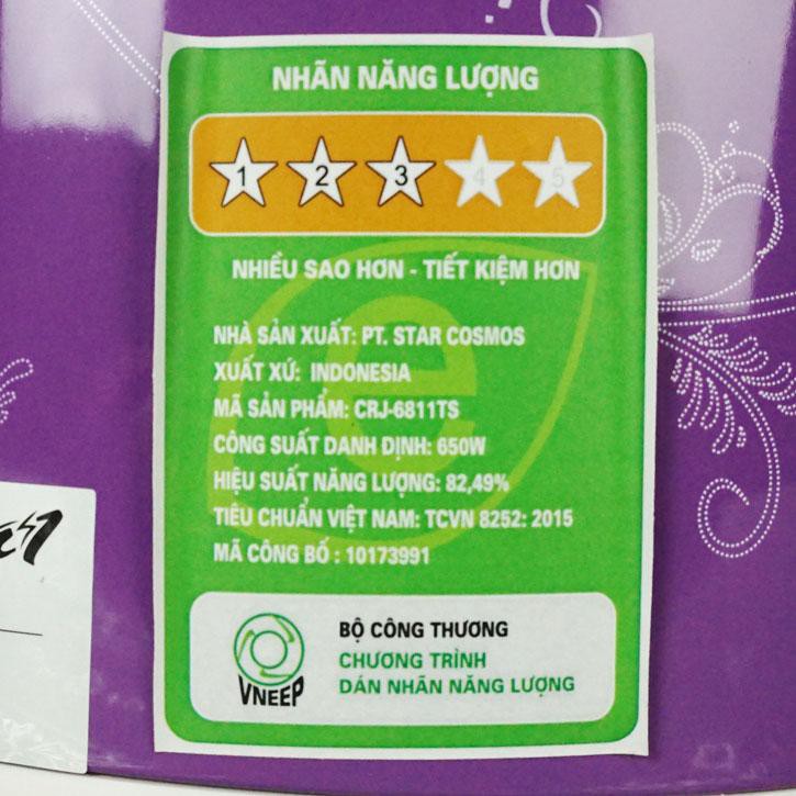 [Mã ELHADEV giảm 4% đơn 300K] Nồi cơm điện 1.8l Cosmos CRJ-6811TS màu Tím có hoa văn