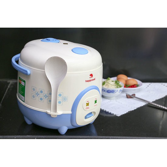 Nồi cơm điện Happycook sản xuất tại Indonesia, thiết kế xinh xắn và đẹp mắt.