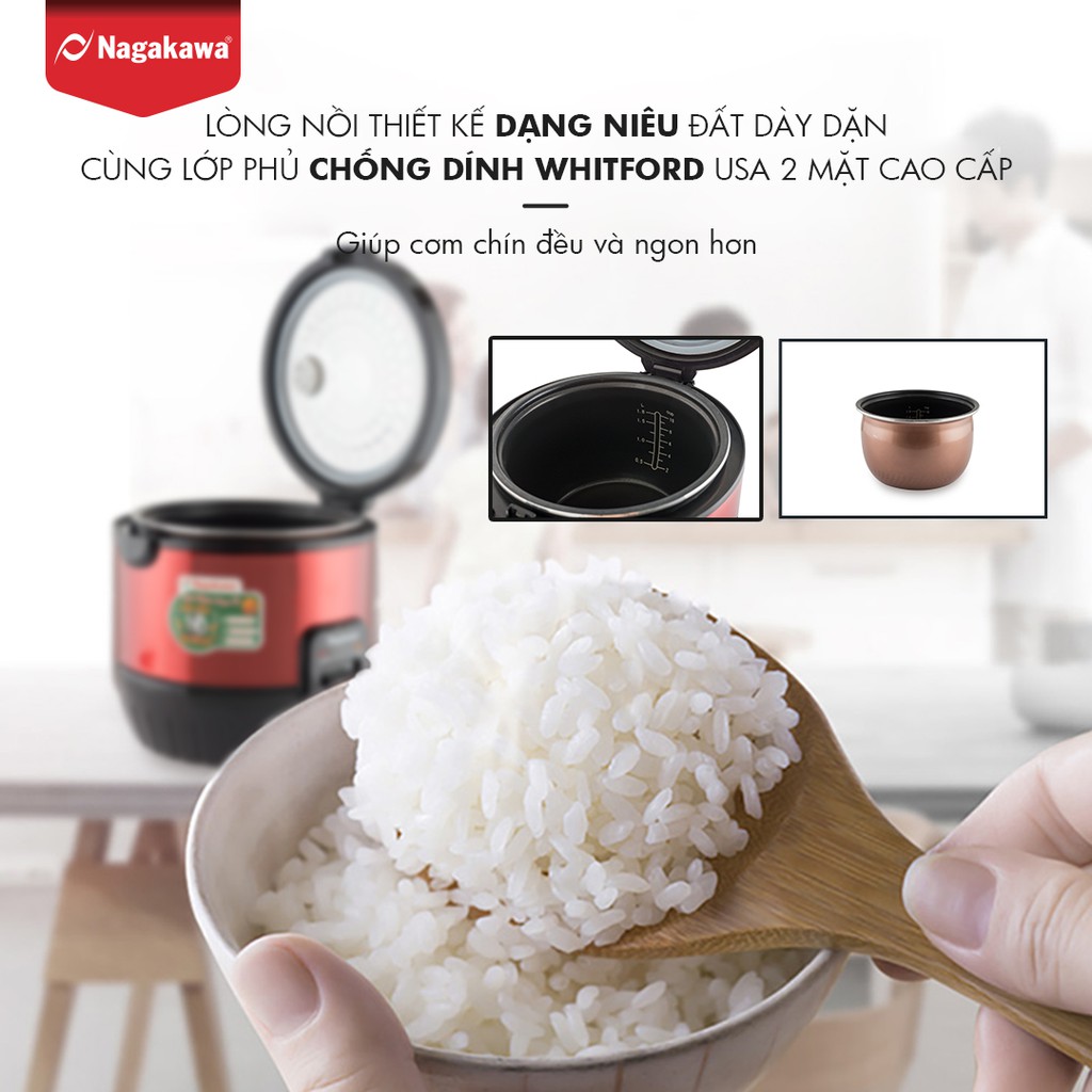 - Nồi cơm điện Nagakawa sở hữu kiểu dáng hiện đại, màu sắc phối kết hợp hài hòa, làm nổi bật không gian nhà bếp của bạn.