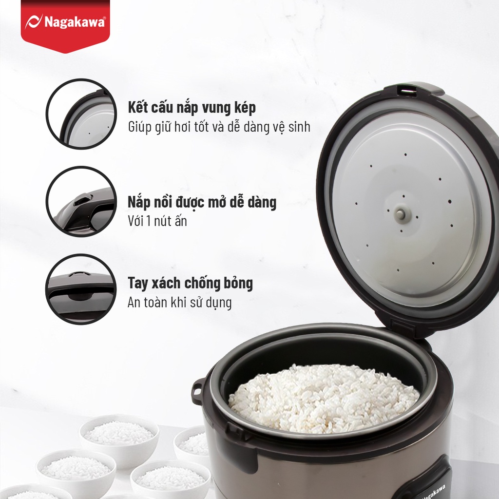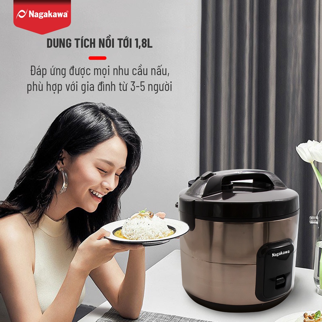 Nồi cơm điện 1,8L NAGAKAWA NAG0133 - Hàng chính hãng - Bảo hành 12 tháng