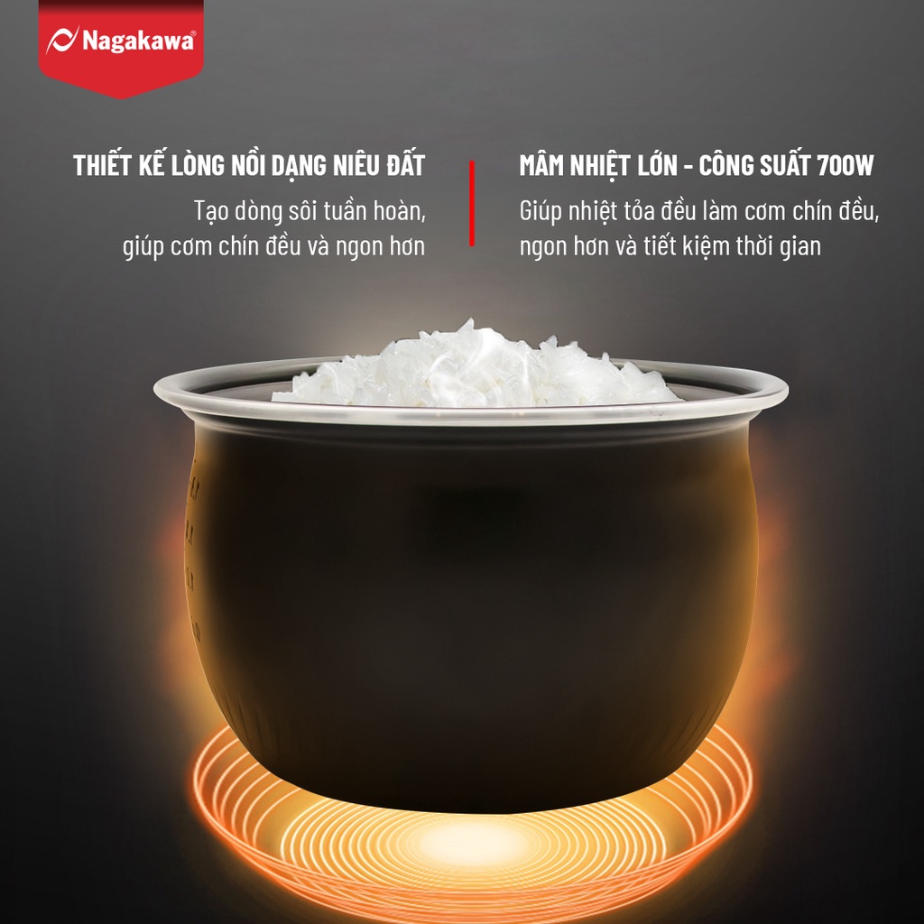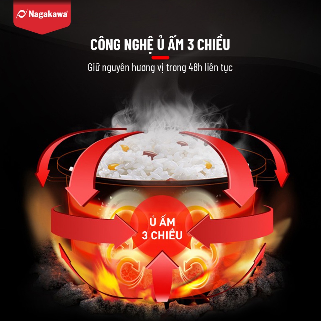 ✔️ ĐẶC ĐIỂM NỔI BẬT Nồi cơm điện NAGAKAWA- Công nghệ ủ ấm 3 chiều giữ nguyên hương vị trong 48h