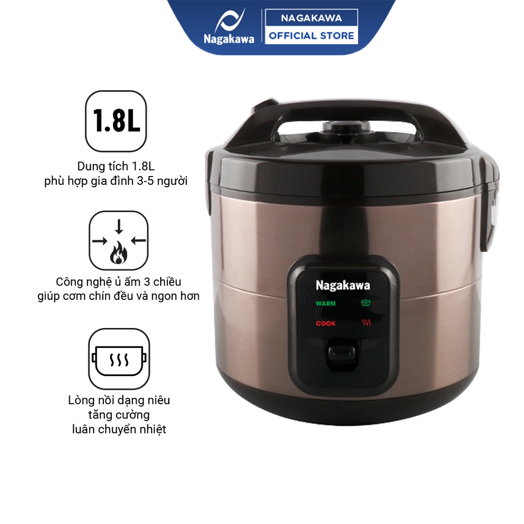 Giới thiệu Nồi cơm điện 1,8L NAGAKAWA NAG0133 - Hàng chính hãng - Bảo hành 12 tháng