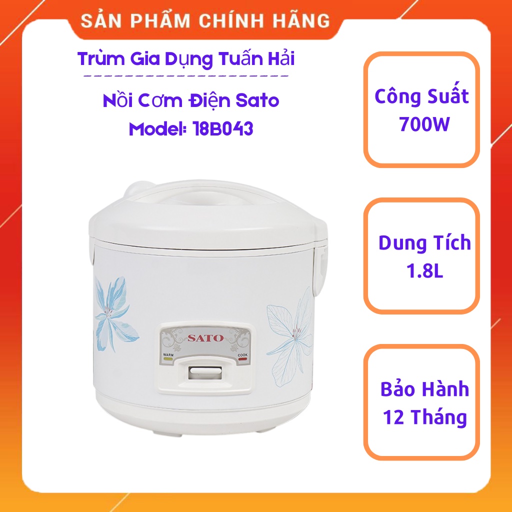 Nồi Cơm Điện 1.8L SATO 18B043, Thiết Kế Sang Trọng Tao Nhã, Ủ Ấm Đa Chiều