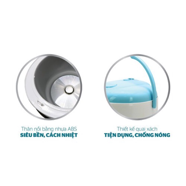 Thân nồi được làm bằng nhựa ABS cao cấp siêu bền, chịu nhiệt, chịu lực tốt. Sản phẩm có bề mặt sáng bóng, hạn chế bám bụi, dễ dàng lau chùi và cách nhiệt tối đa, giúp bạn không bị nóng tay khi nồi đang nấu.