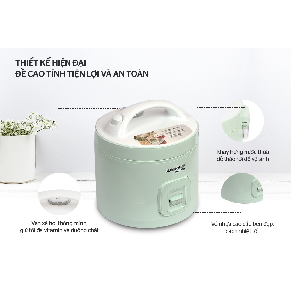 [Mã ELHADEV giảm 4% đơn 300K] Nồi cơm điện 1.8L Sunhouse Mama SHD8665B - Công suất 900W, bảo hành 24 tháng