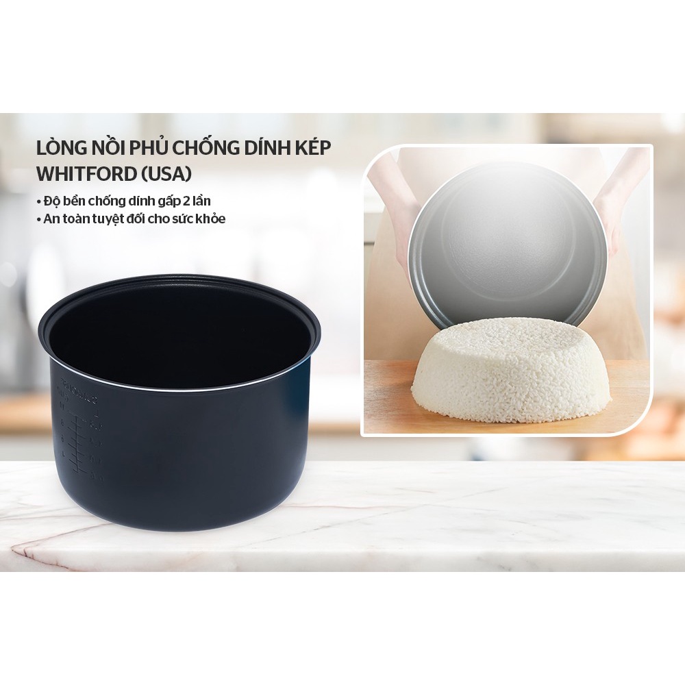 ĐẶC ĐIỂM NỔI BẬT- Lòng nồi phủ 2 lớp chống dính Whitford (USA)