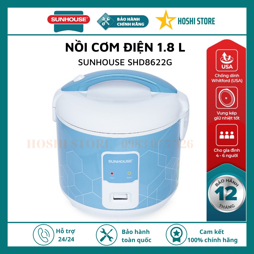 Giới thiệu [Mã ELHADEV giảm 4% đơn 300K] NỒI CƠM ĐIỆN 1.8L SUNHOUSE SHD8622G