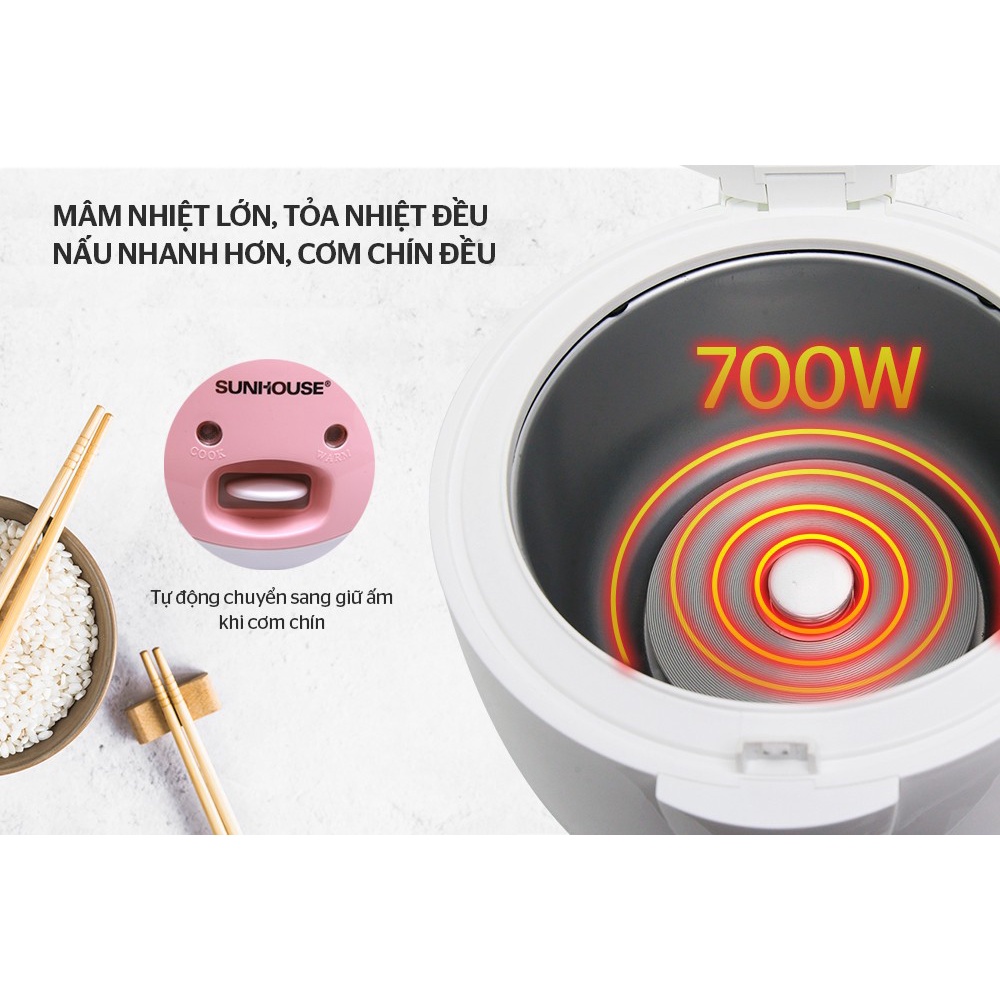 Nồi cơm điện 1.8L Sunhouse SHD8607W, Công suất 700W, sản xuất tại Việt Nam, Bảo hành 12 tháng