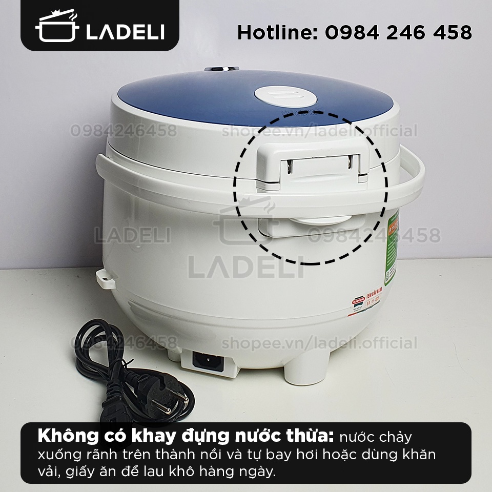 ❌ Nồi KHÔNG CÓ khay đựng nước thừa. Nước đọng trên nắp chảy xuống thành nồi, bạn chỉ cần lau hàng ngày là sạch sẽ.