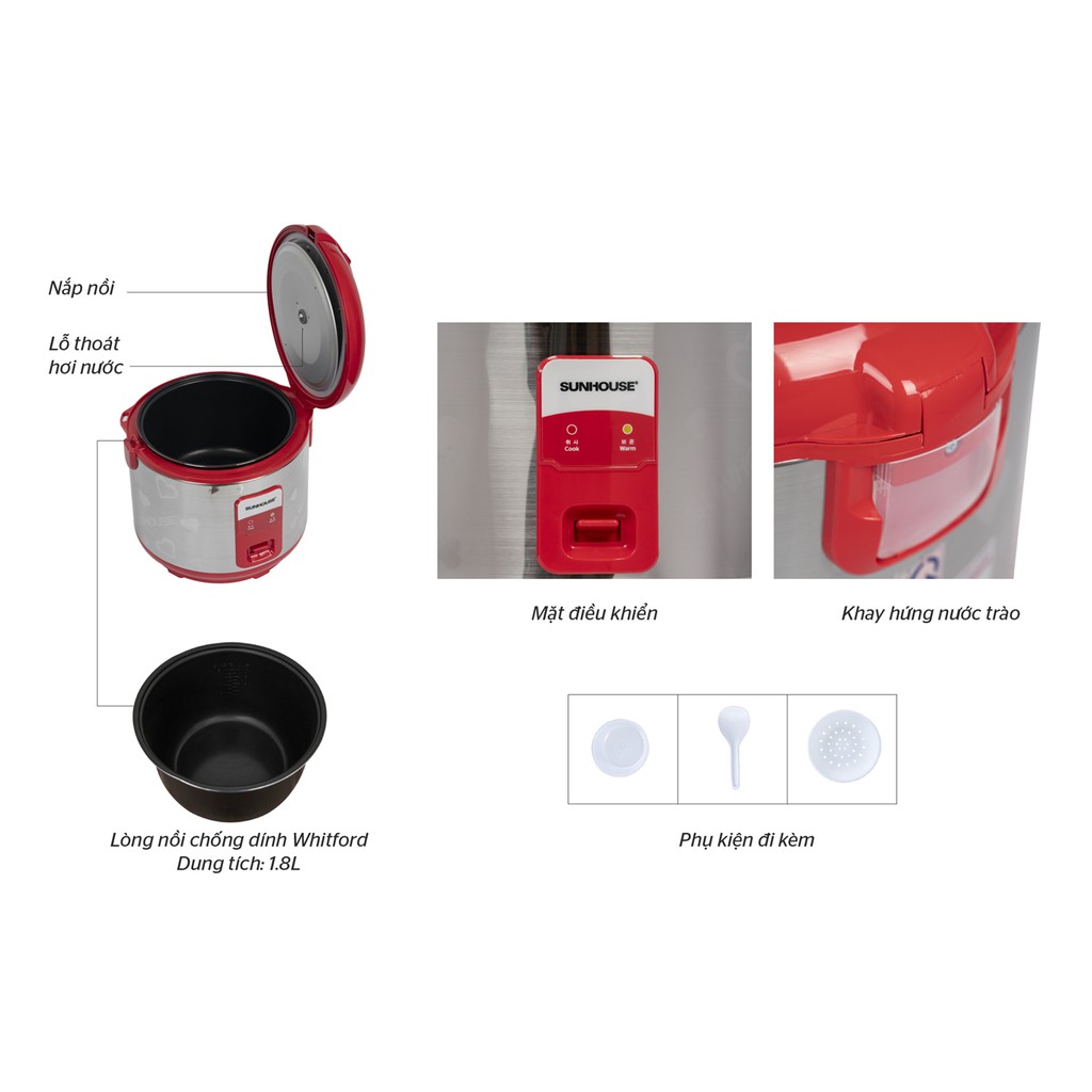 [Mã ELHADEV giảm 4% đơn 300K] Nồi cơm điện 1.8L SUNHOUSE SH18S
