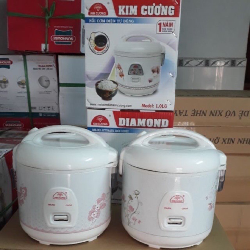 Đặc điểm nổi bật của sản phẩm-- Nồi cơm điện Kim Cương 1 lít : thân nồi được làm tôn sơn tỉnh điện cao cấp .hoa văn trang nhả