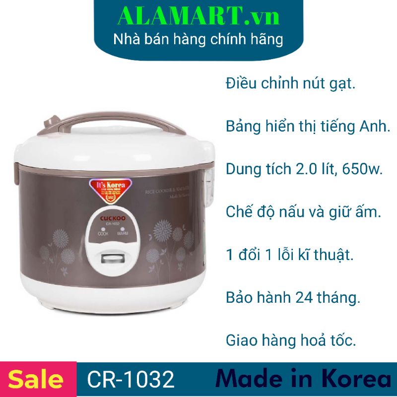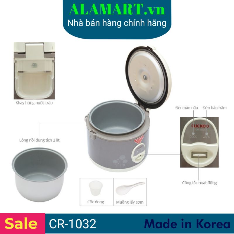 NỒI CƠM ĐIỆN 2L CUCKOO CR-1032 nhập khẩu Hàn Quốc dùng gia đình 4 - 10 người ăn nấu 1,2 kg gạo