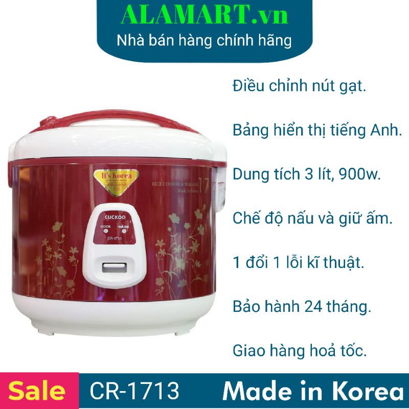 Giới thiệu Nồi cơm điện 3,0L Cuckoo CR-1713 nhập khẩu Hàn Quốc dùng gia đình 6 - 12 người ăn nấu 1,5 kg gạo