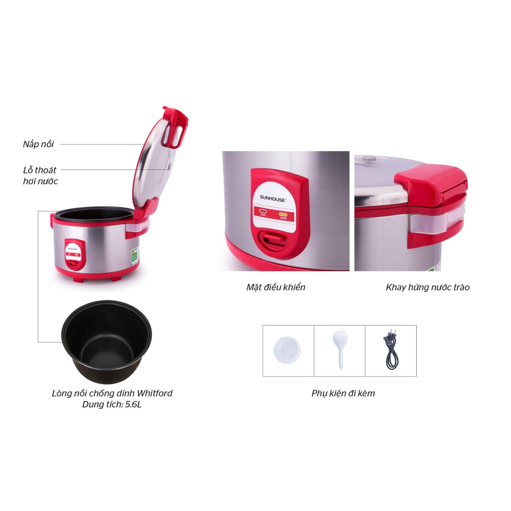 Giới thiệu [Mã 154ELSALE2 giảm 7% đơn 300K] Nồi cơm điện 5.6L SUNHOUSE SH866