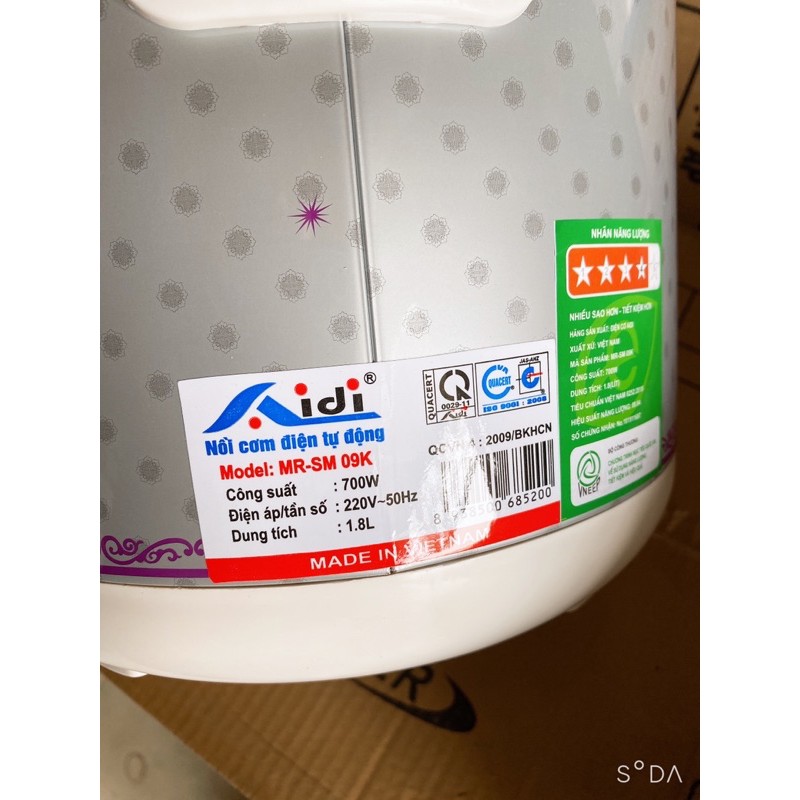 ❤Nồi cơm điện Aidi MR-SM 07H/07J/09KHãng sản xuất: Việt Nam