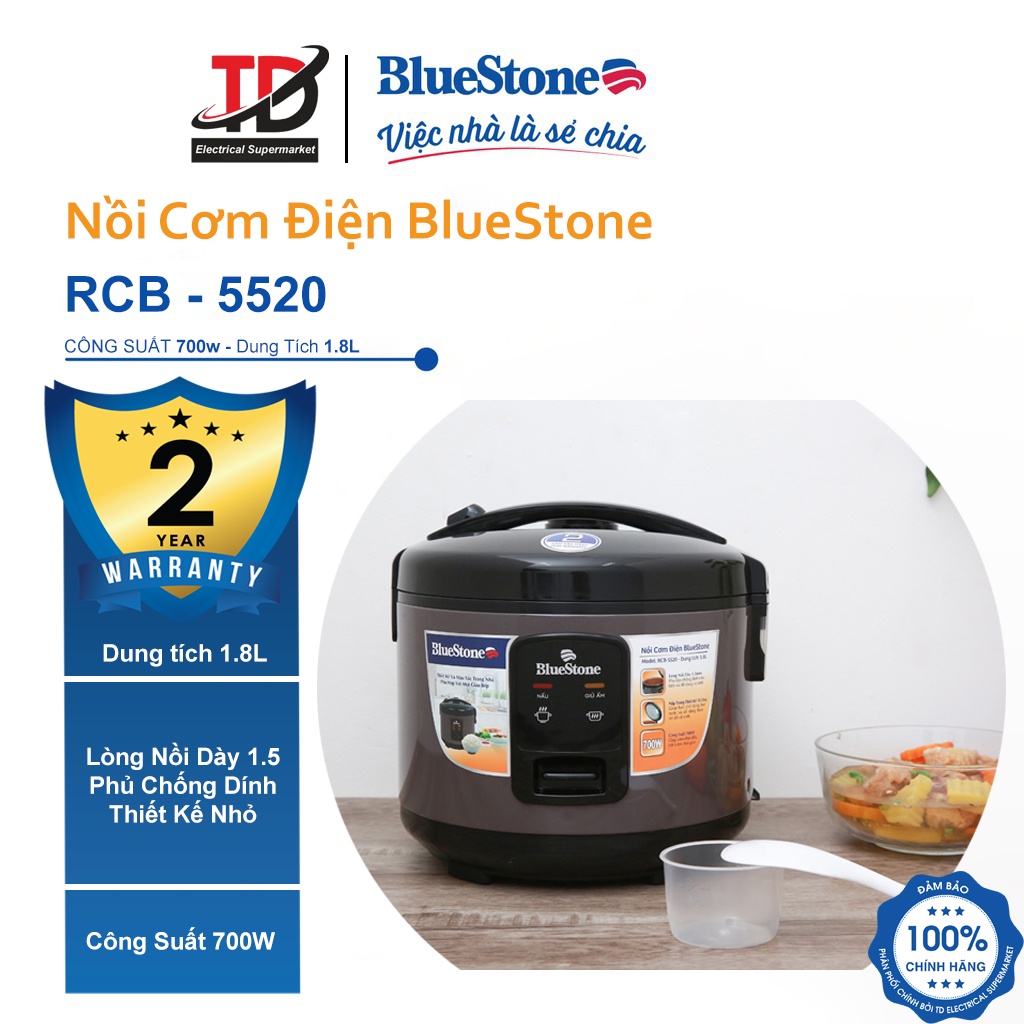 Giới thiệu [Mã ELHAMS5 giảm 6% đơn 300K] Nồi cơm điện Bluestone 1.8 lít RCB-5520 - Bảo hành chính hãng 2 năm