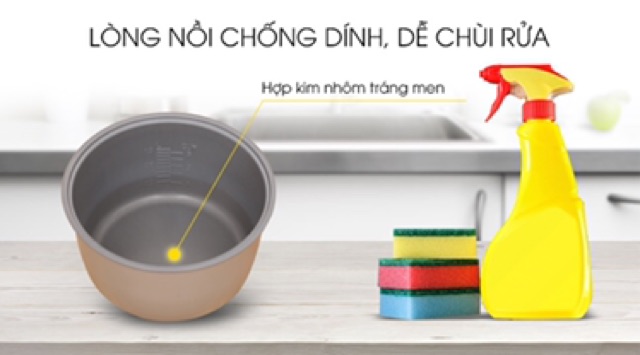 Lòng nồi bằng hợp kim nhôm chống dính an toàn cho sức khỏe, dễ làm sạch.