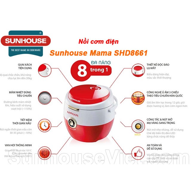 SUNHOUSE là một thương hiệu hàng đầu tại Việt Nam trong nhiều loại sản phẩm gia dụng và điện tử tiêu dùng. Với sự tăng trưởng mạnh mẽ và nhanh chóng các sản phẩm của SUNHOUSE để lại ấn tượng tốt với chất lượng hàng đầu đem đến tự tin tưởng với người tiêu dùng.❤️ NỒI CƠM ĐIỆN CAO CẤP SUNHOUSE MAMA SHD8661 ❤️