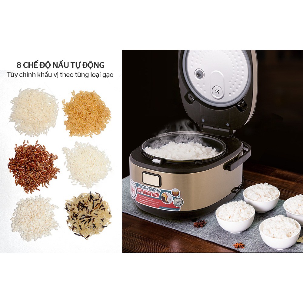 Chế độ: Nấu cơm theo loại gạo, súp, cháo; hâm nóng; làm bánh; hấp; giữ ấm
