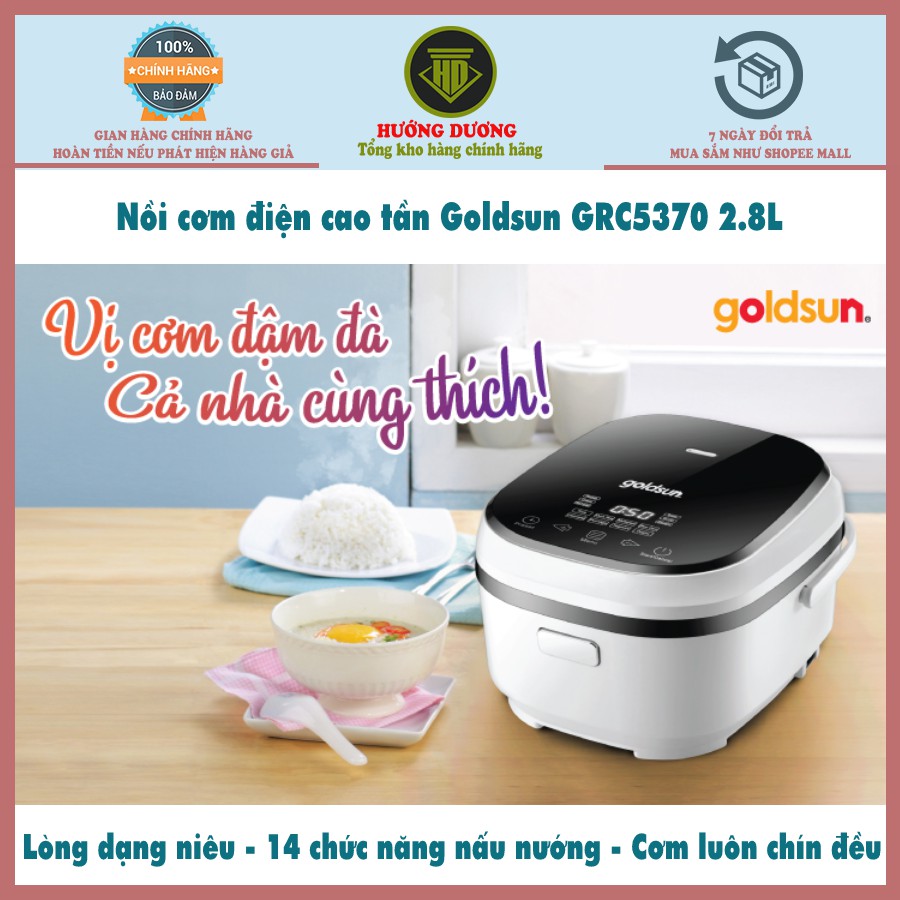 Thiết Bị Điện Gia Dụng > Đồ gia dụng nhà bếp > Nồi cơm điện || [Mã 273ELHA100K0 hoàn 7% đơn 500K] Nồi cơm điện cao tần 14 chức năng có nướng Goldsun GRC5370 2.8L - Cồng suất 1300WCòn hàng