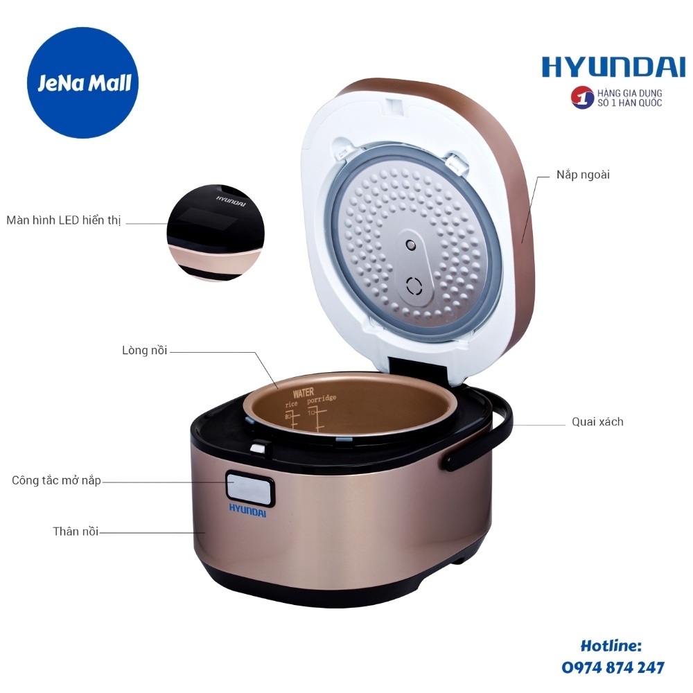 Giới thiệu Nồi Cơm Điện Cao Tần HYUNDAI - HDE 2201G, Nồi Cơm Điện Cảm Ứng Từ Dung Tích 1.5 Lít & 1.8 Lít [ Hàng chính hãng ]