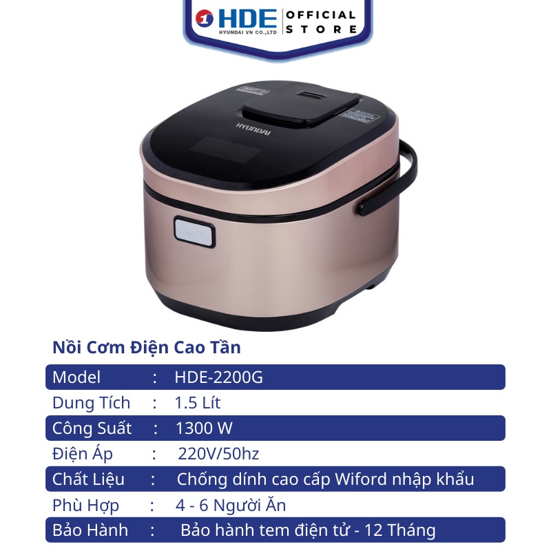 [Mã ELHADEV giảm 4% đơn 300K] Nồi cơm điện cao tần HYUNDAI 2201G / 2200G 1.5 L và 1.8 L - Bảo hành 12 tháng