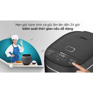 Cài đặt thời gian lên đến 24 giờ, cơm sẽ chín vào đúng giờ hẹn và chuyển sang chế độ Giữ ấm.