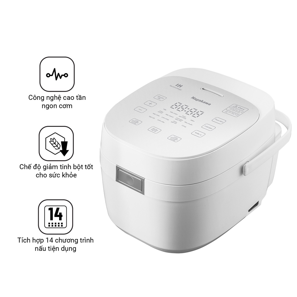 Nồi cơm điện cao tần Nagakawa NAG0140 (1.2L) - 12 chế độ nấu - Giảm tinh bột - Bảo hành 12 tháng