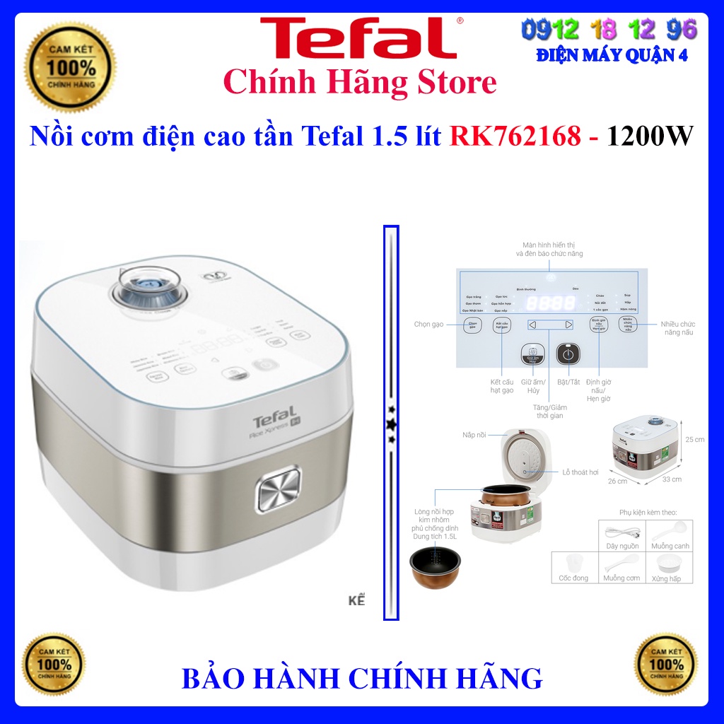 Nồi cơm điện cao tần Tefal 1.5 lít RK762168, Bảo hành chính hãng 24 tháng