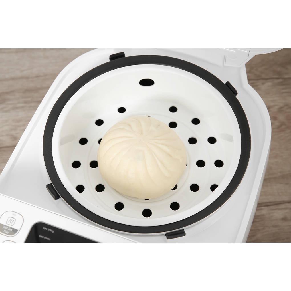Đi kèm phụ kiện vá cơm, vá múc canh, cốc đong gạo, xửng hấp tiện lợi.