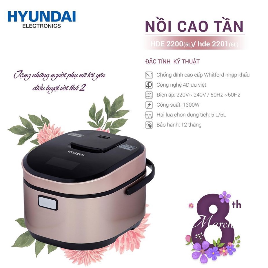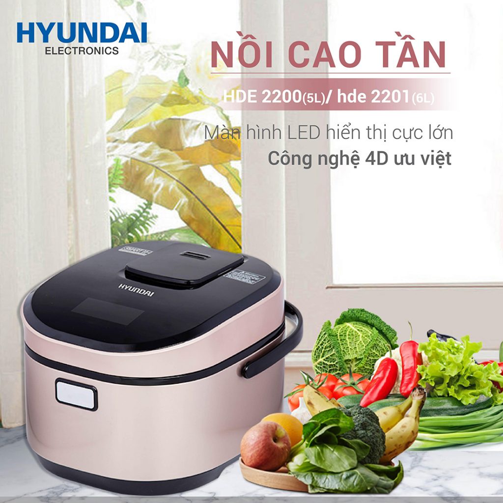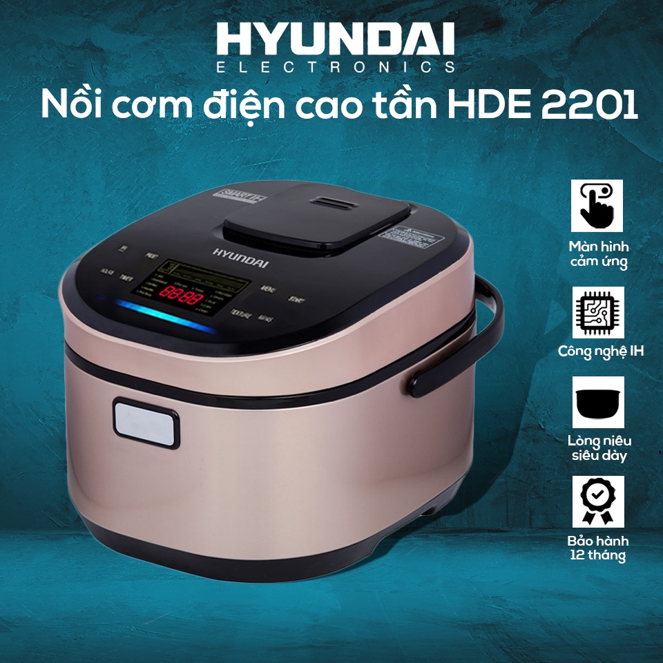 Nồi cơm cao tần Hyundai thiết kế hiện đại, phong cách Hàn Quốc, Cảm biến nhiệt thông minh, đa chức năng (nấu cơm, nấu cháo, hấp, làm bánh, ủ nóng…)