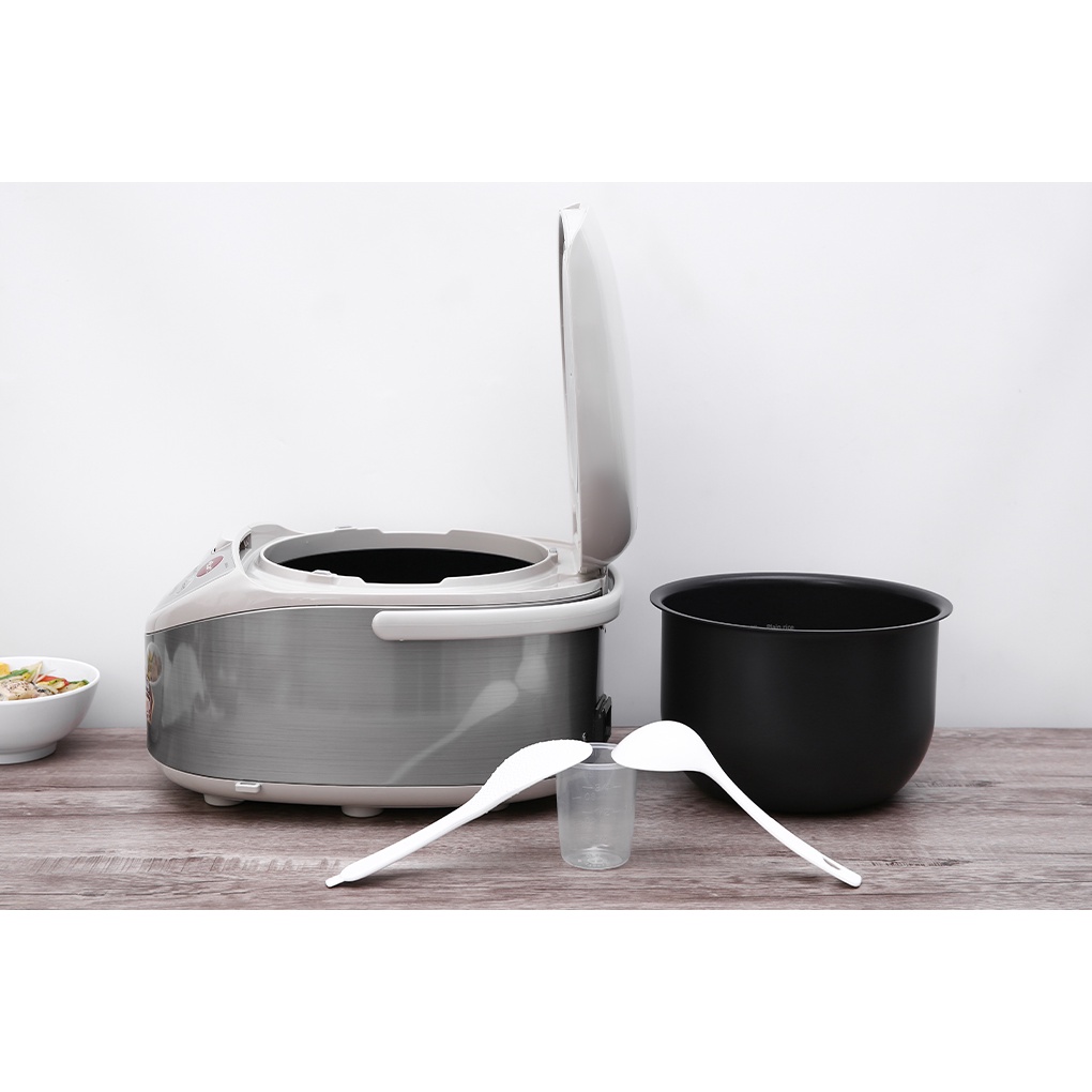✔ Lòng nồi dày 1.621 mm làm từ hợp kim nhôm phủ lớp chống dính, an toàn, bền bỉ, giúp nấu cơm chín đều, thơm ngon.