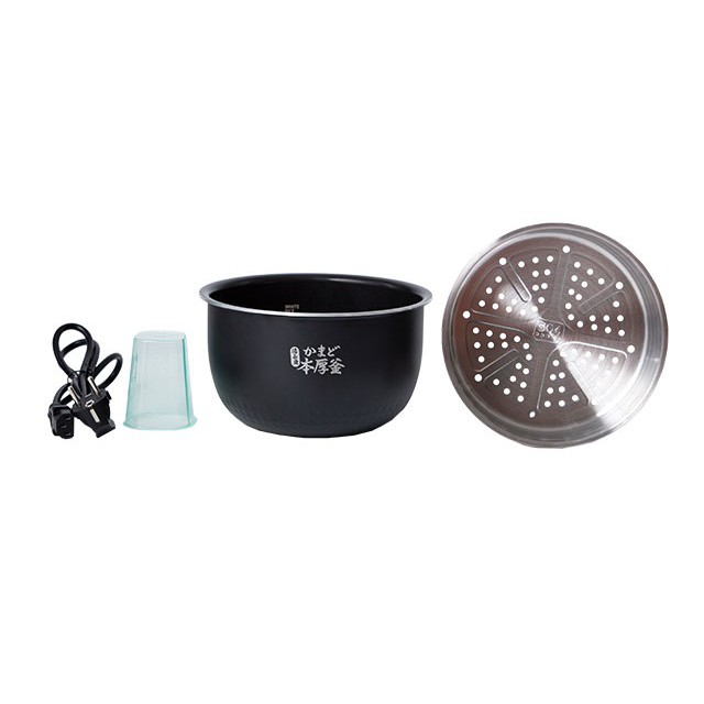 Đi kèm với nồi là dây nguồn 111 cm, xửng hấp bằng thép không gỉ, cốc đong, muỗng cơm, muỗng canh