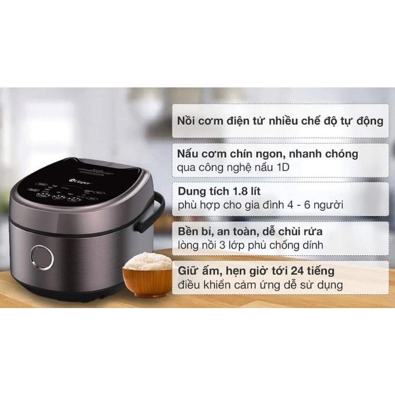 Bên cạnh đó, nồi cơm điện Casper CD-18RC01 còn sở hữu những ưu điểm như: