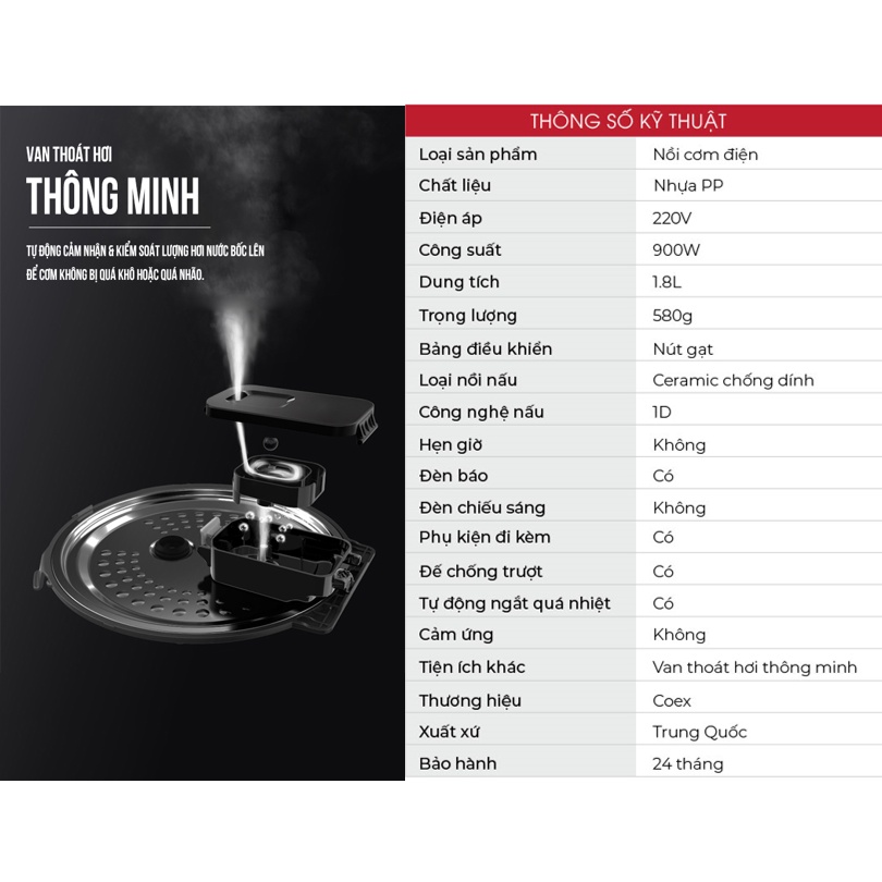 Giới thiệu [Mã ELHADEV giảm 4% đơn 300K] Nồi cơm điện cơ 1.8L Coex CR-3410