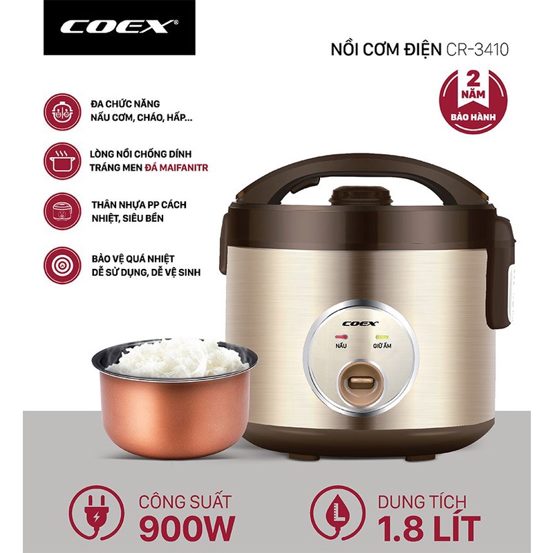 [Mã ELHADEV giảm 4% đơn 300K] Nồi cơm điện cơ 1.8L Coex CR-3410