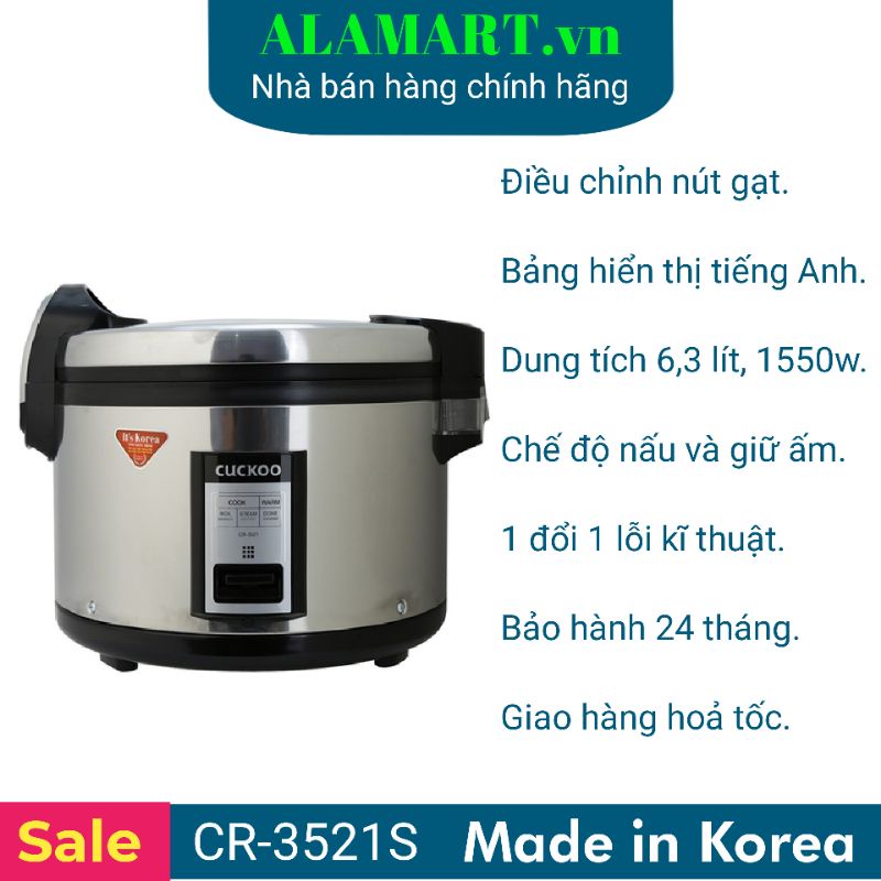 NỒI CƠM ĐIỆN CƠ 6,3L INOX CUCKOO CR3521S nấu 3 kg gạo dùng 10 20 người