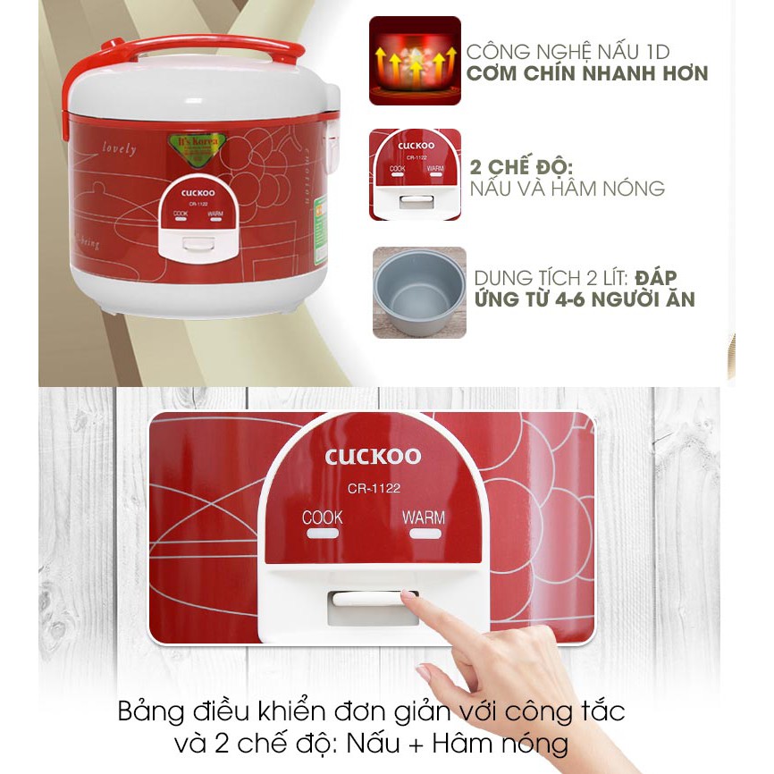 Nồi cơm điện cơ Cuckoo CR-1122 dung tích 2 lít công suất 650W xuất xứ Hàn Quốc - Bảo hành chính hãng 12 tháng