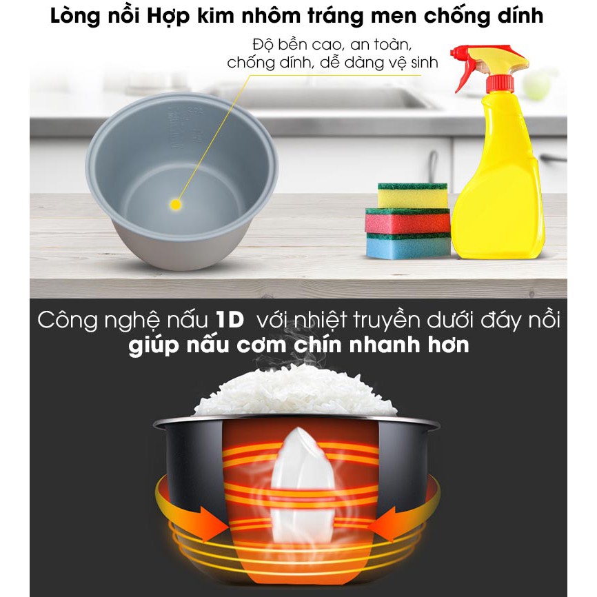 - Nấu cơm nhanh khoảng 30 phút, tiết kiệm điện với công nghệ nấu 1D.