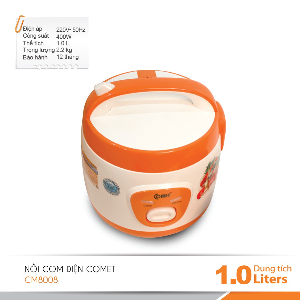 [Mã ELHADEV giảm 4% đơn 300K] Nồi cơm điện COMET CM8008 - 1L