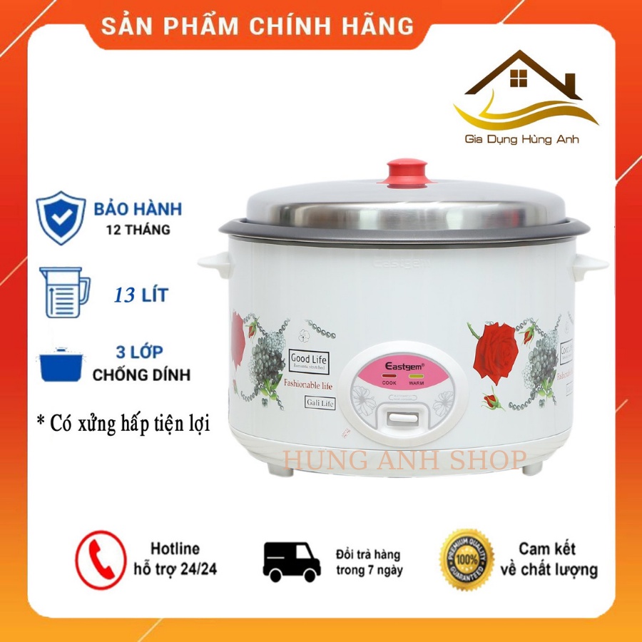 Nồi Cơm Điện Công Nghiệp Dung tích lớn Eastgem 10L, 13L - Chống Dính Tốt - Có Xưởng Hấp Tiện Dụng - Bảo Hành 12 Tháng