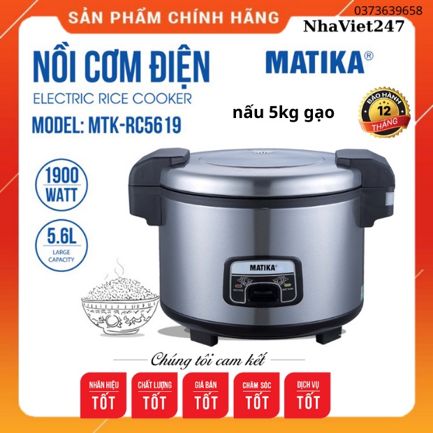 Nồi cơm điện công nghiệp MATIKA-RC5619 (5.6L)-1900w vung liền,có chống dính-nấu nhanh,cơm dẻo ngon,chính hãng,giá rẻ