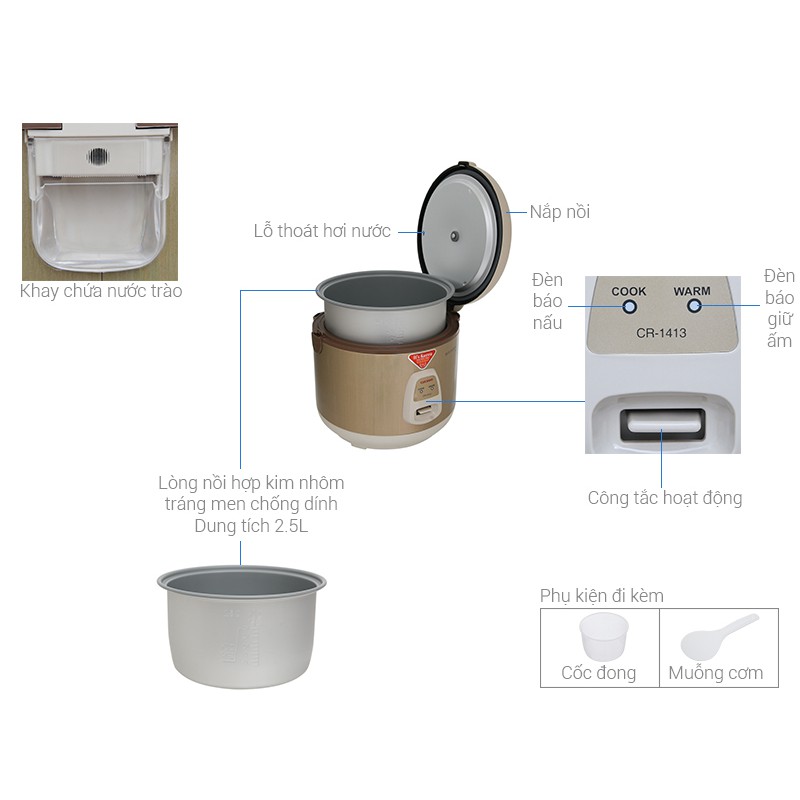 Thông số kỹ thuật chi tiết Nồi cơm điện Cuckoo 2.5 lít CR-1413Đặc điểm sản phẩm